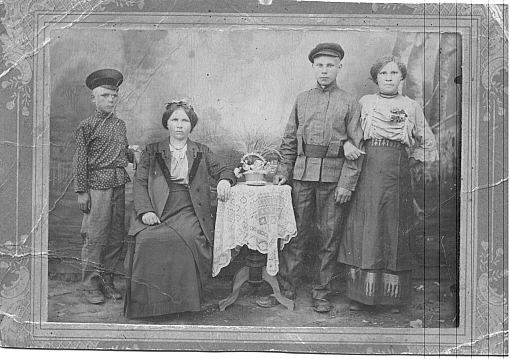 1904. My great-grandparents Nikita Goncharov (1872-1916) and Tatyana Goncharova; their children: Alexander (1903-),Nikolai (1896-), and Zinaida (1900-1991). Zinaida was my grandmother (mother side), Nikolai and Alexander - my great-uncles. Tatyana Goncharova (maiden name Dmitrieva) was a noblewoman by her hereditary title (dvoryanka in Russian).