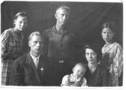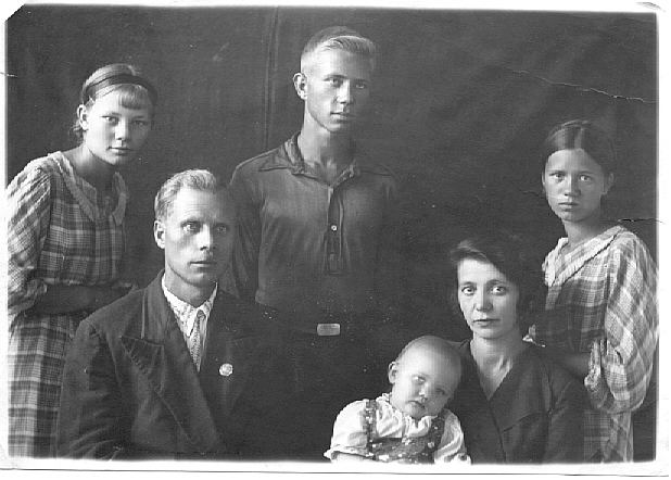 1939. My grandparents Mikhail Kuz (1899-1976) and Zinaida Kuz (1900-1991, maiden name Goncharova). Children - Tamara (my mother, b. 1923), uncle Anatoly (1920-1982), aunts Lydia (1925-1997) and Ludmila (b. 1938). Anatoly fought in the Navy againd Nazi Germany in WWII, and then served on the Russian fleet. Three years after this picture was taken, Tamara married Alexey Klyosov, and in four more years I was born - on a former German territory, near Konigsberg, where the Russian Army, in which my father had served, was stationed at the end and after the war.